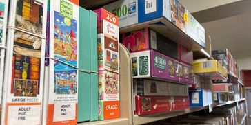 Our puzzle collection contains 300-, 500-, 550-, and 1,000-piece puzzles. We also have a small children's puzzle selection.