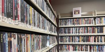 We have a section of DVDs for adults and for children, including Blu-ray discs, fiction, and non-fiction.