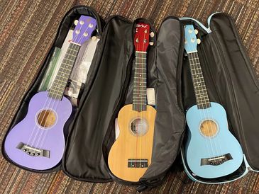 Bring home one of our 5 ukuleles to practice your music skills! Learning materials are also available.